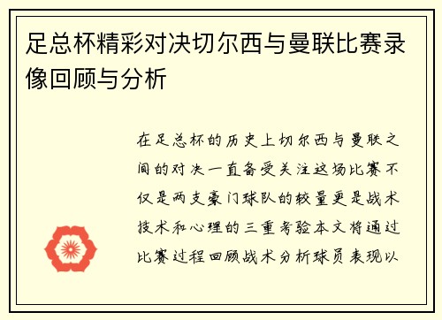 足总杯精彩对决切尔西与曼联比赛录像回顾与分析